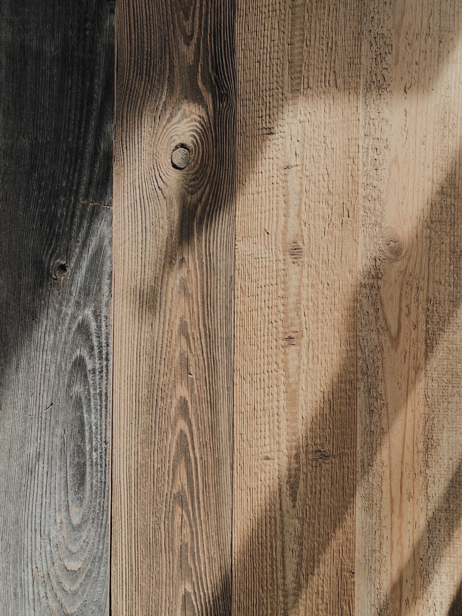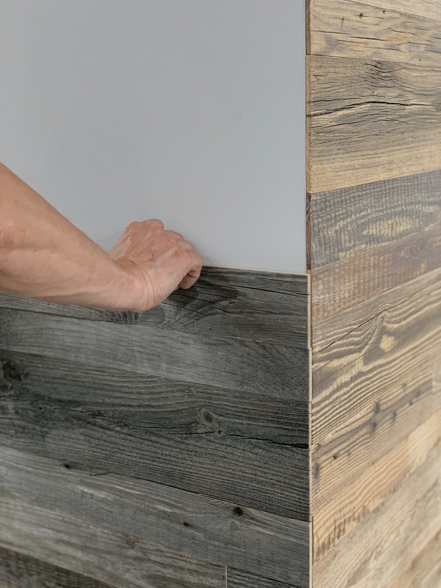 Se fabrica con madera recuperada y sostenible que importamos de varios lugares de EU. Es un material ligero y delgado, casi libre de residuos y muy fácil de instalar. Cuenta con un sistema consistente en la misma placa de madera y un adhesivo en la parte posterior, que es la parte que irá pegada a la pared o la superficie que hayamos seleccionado para revestir.